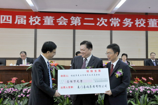 10月28日,集美大學(xué)校董歡聚,嘉賓云集。省長、校董會主席出席第四屆校董會第二次常務(wù)校董會議并作講話。省長、副省長陳樺、我司董事長王龍雛等為集大優(yōu)秀學(xué)生代表頒發(fā)“象嶼集團獎學(xué)金”。 為激勵廣大青年學(xué)生努力學(xué)習(xí)、刻苦鉆研、不斷創(chuàng)新,集團今年6月與集美大學(xué)簽訂協(xié)議設(shè)立“象嶼集團獎學(xué)金”,每年從“象嶼集團100萬獎學(xué)基金”中提取不低于10%的基金收益作為“象嶼集團獎學(xué)金”,獎勵50名學(xué)生,每名獎勵2000元。