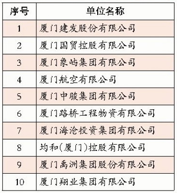 2014廈門服務業(yè)企業(yè)十強排行榜