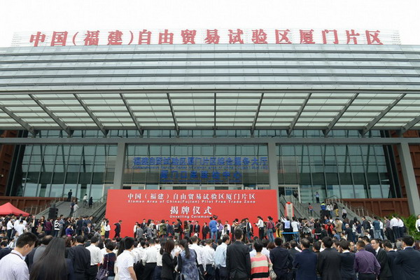 中國(guó)(福建)自由貿(mào)易試驗(yàn)區(qū)廈門片區(qū)在兩岸貿(mào)易中心舉行揭牌儀式