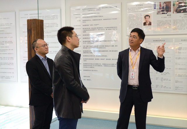 3月15日,吳向國(guó)副主任一行首先參觀了象嶼文化空間。張水利董事長(zhǎng)詳細(xì)介紹了集團(tuán)歷史概況和業(yè)務(wù)板塊。在隨后的座談會(huì)上,林俊杰副總裁向來賓分享了集團(tuán)組織架構(gòu)和管控框架,集團(tuán)投資發(fā)展總監(jiān)吳捷、投資管理總監(jiān)劉寶全等參加。