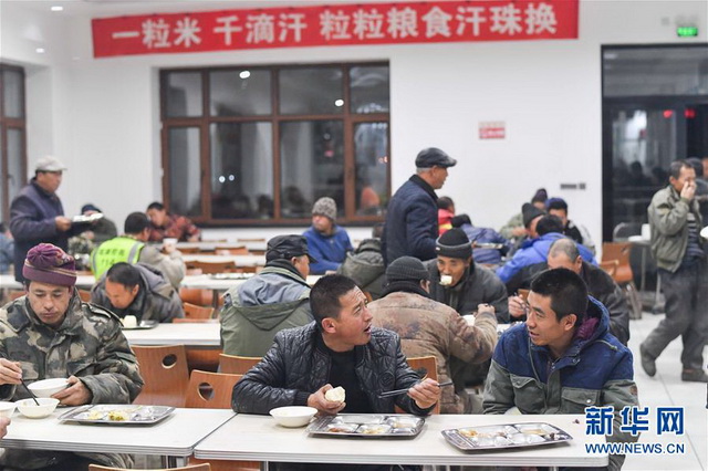 免費(fèi)餐廳中,糧農(nóng)們邊用晚餐邊等待過磅、卸糧、結(jié)算