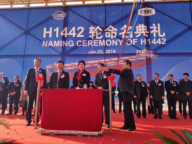 1月25日,揚州中遠海運重工有限公司和外高橋造船有限公司聯(lián)合為中遠海散運建造的40萬噸礦砂船(VLOC)首制船在上海順利命名交付。象嶼股份黨委委員、象嶼股份副總經(jīng)理肖靜勤代表廈門象嶼股份有限公司參加了命名交船儀式,擔(dān)任新船教母,為新船命名“遠津海”并剪彩。