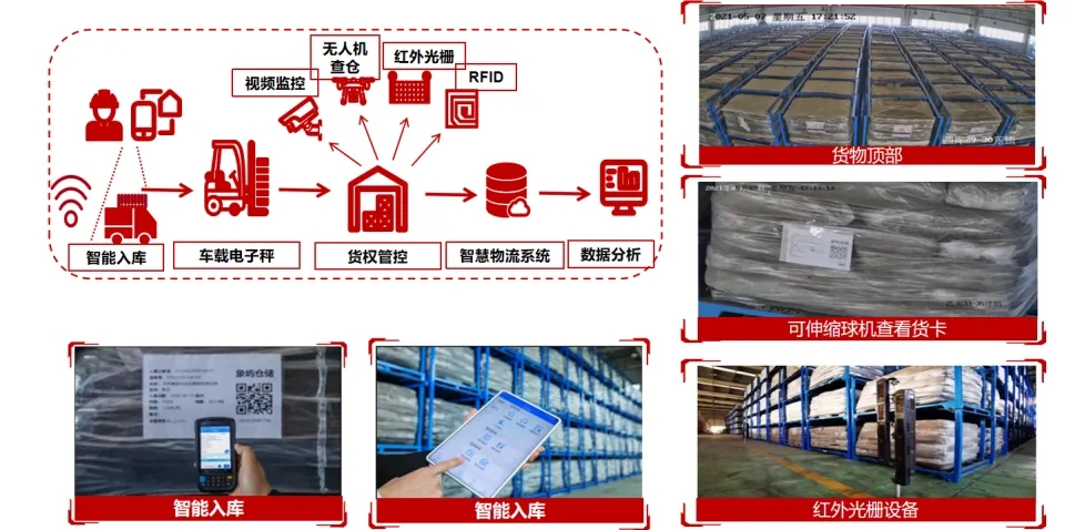 在倉庫進場、稱重、收費、存儲等環(huán)節(jié),努力推動完全無紙化操作,操作人員只需利用手持移動設備掃碼進行數(shù)據(jù)錄入,實現(xiàn)智能入庫、盤貨、出庫等動作。倉庫同步應用視頻監(jiān)控識別、紅外光柵、云端等技術,客戶可通過移動終端就能進行實時查詢或歷史查詢,讓貨權看得住、管得住。