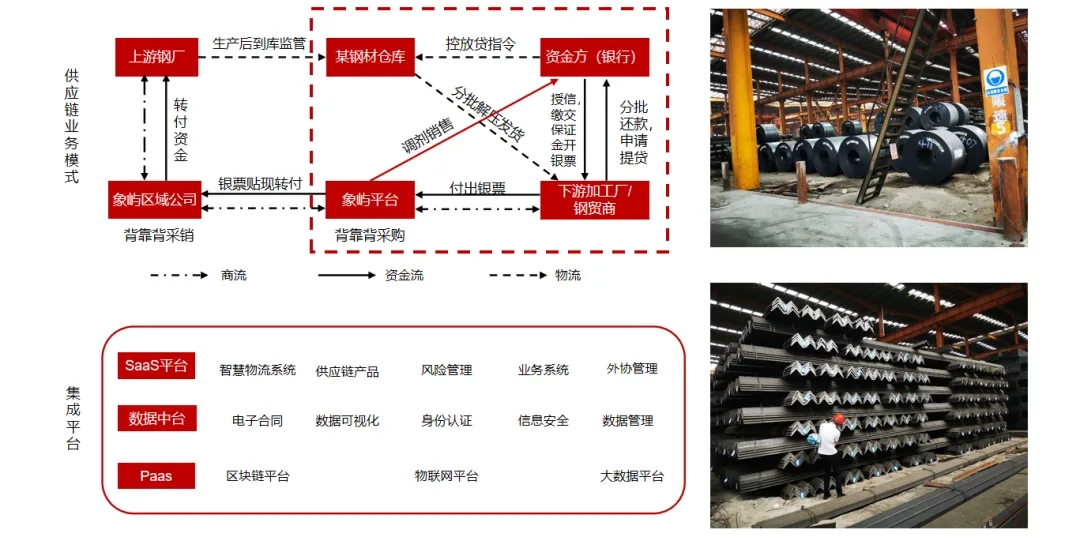 象嶼股份作為供應鏈核心企業(yè),借助IOT(物聯(lián)網)、區(qū)塊鏈、AI等技術,圍繞塑化、鋁產品、鋼材等產品進行倉單質押融資,通過數(shù)字化建設,輔助背書客戶資信、貨權監(jiān)管和輔助銷售,獲取資金方的認可,幫助中小微企業(yè)客戶增信,解決中小微企業(yè)融資難的問題。目前象嶼智慧物流平臺已獲得建行總行、普洛斯等多家金融機構數(shù)字化監(jiān)管倉準入,《人民日報》等媒體也作了專題報道。